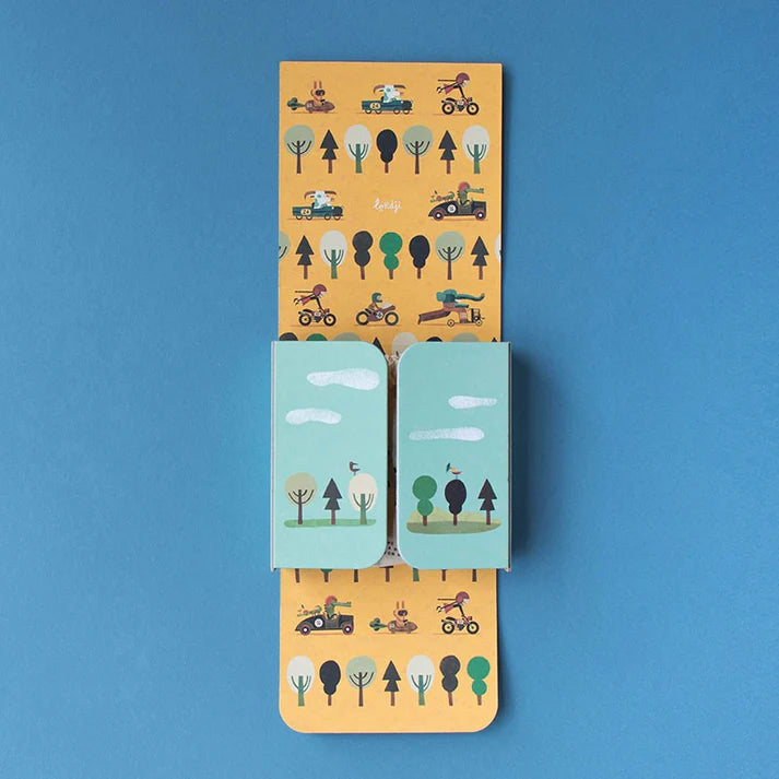 A 50 piece pocket-sized puzzle. We introduce you to the characters of this race. Who will arrive first? A sustainable puzzle, made of recycled paper and cardboard.